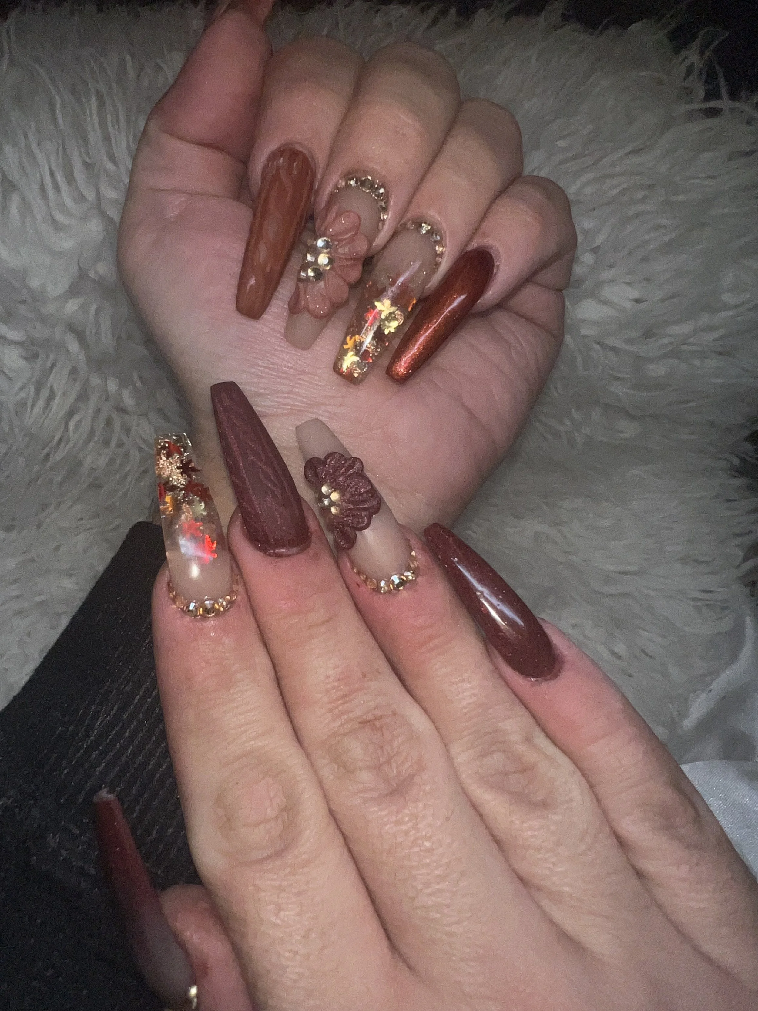 Acrylic nails are a long-lasting nail enhancement created by combining a liquid monomer and powder polymer to form a hard, protective layer over your natural nails or extensions. They can be shaped, sculpted, and finished with the polish of your choice for a clean, strong, and beautiful look.